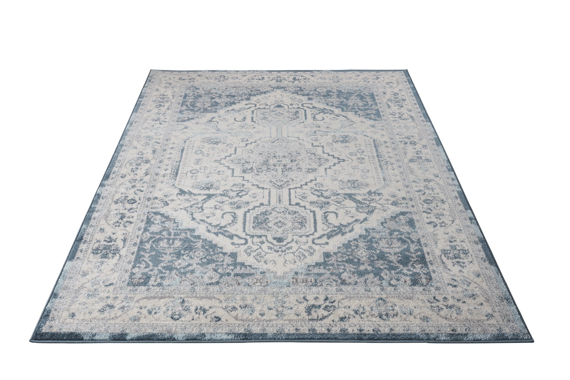 Lux Cotto Persian Bordered Blue Cream Area Rug